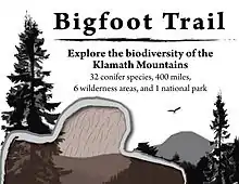 The Bigfoot Trail is an unofficial U.S. long-distance hiking trail in northern California.[1] The Bigfoot Trail was originally proposed by Michael Kauffmann in 2009 as a suggested route to navigate the Klamath Mountains from south to north as well as a long-trail to introduce nature lovers to the biodiversity of the Klamath Mountains region.[2] The trail begins in the Yolla Bolly-Middle Eel Wilderness and ends in Redwood National Park at the Pacific Ocean near Crescent City, California. A major focus along the trail is conifer diversity, passing 32 species in 360 miles (580 km). The route crosses six wilderness areas, one National Park, and one State Park. Northwest California's Klamath Mountains foster one of the most diverse temperate coniferous forests on Earth,[3] and this route is intended to be a celebration of that biodiversity.