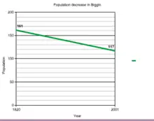 The fact Biggin's population has actually decreased over a century isn't really surprising or significant for a parish of its size as more than eighty per cent of Britain's population now live in urban areas.[6]