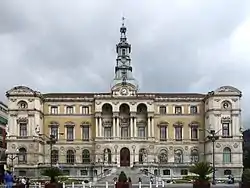 The City Hall of the borough of Bilbao, Spain, is located on the right bank of the Estuary of Bilbao across the Puente del Ayuntamiento bascule bridge that links it to the central Abando district.[1]