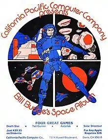 Bill Budge's Space Album is a collection of four Apple II action games written by Bill Budge and published by California Pacific in 1980.[1] The games are Death Star, Asteroids, Tail Gunner, and Solar Shootout.[3] Death Star was based around a scenario similar to the Death Star "trench battle" that formed the climax of the 1977 film, Star Wars Episode IV: A New Hope.