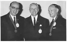 From L-R: S. Willam (Bill) Hayes, G. Ronald Davies (Director of Evans Medical Australia), P. Lance Jeffs