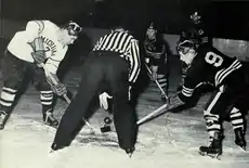 ![]() MacFarland facing off with Clare Smith of Colorado, 1956 | |||