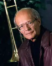 The clarinet would be repaired at the local music shop and Bill's band teacher suggested that he might try a different instrument, the trombone. At ten years old, Bill got his first trombone, "...an old King trombone for $20 at a local second hand shop," he says. He began practicing with the aid of an old Victrola and a 78 rpm of John Phillip Sousa marches. His music teacher would come by once a week, and for his first lesson, tied the slide on his trombone so that Bill could not use it. The whole idea was to have him focus on his tone, rather than the notes.[2]