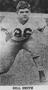 William Gerald "Earthquake" Smith (October 23, 1926 – September 6, 2009) was an American football player who played at the tackle and end positions. A native of Lexington, North Carolina, he attended Lexington High School. He played college football for North Carolina in 1944 and 1947.[1][2][3] He served in the military during World War II. He was selected by the Chicago Cardinals in the third round (23rd overall pick) of the 1948 NFL Draft. He did not play for the Cardinals, opting instead to play in the All-America Football Conference for the Chicago Rockets and Los Angeles Dons during the 1948 season. He appeared in two games for the Rockets and 10 or 11 games for the Dons.[1][4]