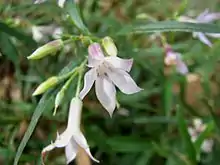 Billardiera sericophora is a small spreading shrub in the family Pittosporaceae. The species is endemic to South Australia. Cream to yellow or pale purple flowers appear between August and December in the species' native range. These are followed by cylindrical berries that are about 25 mm long and 8 mm in diameter.[1] The species was formally described by botanist Ferdinand von Mueller in 1852 following its discovery during a botanical survey of Port Lincoln by Carl Wilhelmi.[2][3]