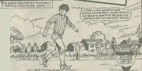 Billy's Boots was a popular British comic strip by writer Fred Baker and artist John Gillatt, later continued by Mike Western. The original Billy's Boots was an earlier humorous series, written and drawn by Frank Purcell, which appeared in Tiger between 1961 and 1963, with a similar premise to this later series. The later more serious Billy appeared in the first issue of Scorcher in 1970,[1] and later moved to Tiger when the two comics merged in 1974. In 1985 Tiger in turn merged with Eagle and the strip moved again, however just a year later Billy's adventures relocated once more, this time to Roy of the Rovers. New adventures were included in the weekly comic until May 1990 (later followed by reprints), before he switched to Best of Roy of the Rovers Monthly. The strip also appeared in annuals, including annuals for comics which had themselves ceased publication, and is still fondly remembered by fans of the "golden age" of British boys' comics.[2] In Finland and Sweden, Billy's Boots was published in Buster magazine. In the UK, stories based on Billy's earliest adventures appeared in Total Football magazine until it closed in 2001, and Billy's story was also reprinted for a few months in the defunct Striker comic.