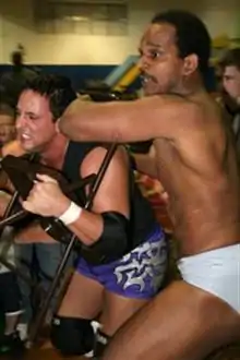 As a wrestler, Kidman is best known for his work with World Championship Wrestling (WCW) and World Wrestling Federation / Entertainment (WWF/E) throughout the late 1990s and early 2000s. While in WCW, Kidman gained fame as a key member of several stables. In addition to being a member of Raven's Flock, he also was a member of The Filthy Animals and later The New Blood.[2] As a member of these stables, Kidman participated in memorable feuds with top WCW names, including Hulk Hogan, Jeff Jarrett, and Rey Mysterio, Jr.[2] Kidman also found championship success while in WCW, where he became a three time Cruiserweight Champion,[4][5][6] a two time World Tag Team Champion[7] (once with Mysterio Jr. and once with Konnan) and a one time (and the final) Cruiserweight Tag Team Champion with Mysterio Jr.[7]