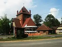 Biltmore Village, formerly Best, is a small village that is now entirely in the city limits of Asheville, North Carolina and near the town of Biltmore Forest. It is adjacent to the main entrance of the Biltmore Estate, built by George W. Vanderbilt, one of the heirs to the Vanderbilt family fortune. Once known as the town of Best, George Vanderbilt created this village as a "company town" for the estate workers. The community was planned and designed to reflect the qualities of an English country village. The village had its own church, which is still in operation today as the Cathedral of All Souls, an Episcopal cathedral. The village also had a hospital, shops, a school, a train station, and other services available.