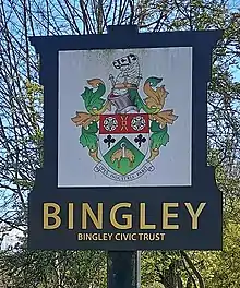 ![]() The old Bingley Coat of Arms, on a sign on the road in from Crossflatts | |