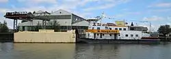 In 2008, the vereniging acquired a decommissioned Rhine LASH carrier (registration number CG S 6013), and installed it as an extension to the museum.[6] It is an example of one of the types of unpowered cargo carrier which René Siegfried would have pushed. In 2018, the vereniging acquired the French-built riverboat Marot,[lower-alpha 2] and added it to their collection.[7] Marot is a surviving example of a Fransemotor ('French motor boat'), one of several such boats built during the postwar years under the Marshall Plan to help European recovery. It was fitted out in 1953 at De Biesbosch as a Rhine working riverboat. It was in service for 65 years (in 1970, it was renamed Jan van Voorst), and was retired in 2018.[8][9]