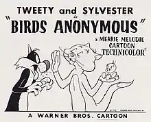 Birds Anonymous is a 1957 Warner Bros. Merrie Melodies animated short, directed by Friz Freleng and written by Warren Foster.[3] The short was released on August 10, 1957, and stars Tweety and Sylvester.[4]