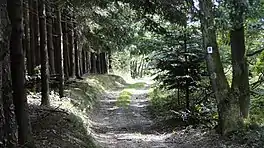 The Birkenhainer Straße (English: Birkenhainer road) is a long-distance hiking trail that follows an ancient trade route through the Mittelgebirge Spessart, in the states of Hesse and Bavaria, Germany. It is 71 km long and leads from Hanau to Gemünden am Main, cutting across the so-called Mainviereck, a large loop of the river Main. The trail follows an ancient trade route which in the Middle Ages was an important road for moving troops and for long-distance trade. The Birkenhainer Straße was a part of the link between Nuremberg and Antwerp. Its origins may lie back as far as the Neolithic period. The name likely derives from a prominent copse of birch trees that used to exist near the road at Geiselbach (Hesse).
