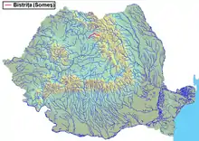 listen); Hungarian: Beszterce) is a river in the Romanian region of Transylvania, Bistrița-Năsăud County. It is sometimes referred to as Bistrița ardeleană.[1] Near the city of Bistrița (at the village Sărata) it flows into the Șieu,[2] a tributary of the Someșul Mare.[3][4] Its length is 67 km (42 mi) and its basin size is 650 km2 (250 sq mi).[4]
