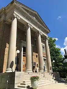 The cornerstone for the Bixby was laid in September of 1911.[1] On August 1, 1912, the 3,530 volumes plus public documents, government reports and unbound magazines of the City Library were transferred to the newly opened Bixby Library and dedication ceremonies were held on October 1, 1912. At the dedication, President John M. Thomas of Middlebury College said:
