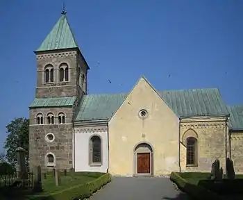 The Bjäresjö Runestones are three Viking Age memorial runestones originally located adjacent to Bjäresjö Church in Bjäresjö, which is about 3 kilometers northwest of Ystad, Skåne County, Sweden. Two of the stones were discovered near the church, and two of the stones have been moved to other nearby locations. Although these three stones are located in Sweden, they have been given Danish designations because Scania was part of the historic Denmark.