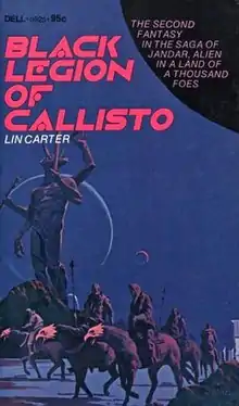 Black Legion of Callisto is a science fantasy novel by American writer Lin Carter, the second in his Callisto series. It was first published in paperback by Dell Books in December 1972, and reprinted twice through January 1974. The first British edition was published by Orbit Books in 1975. It was later gathered together with Jandar of Callisto into the omnibus collection Callisto: Volume 1 (2000).[1] The book includes an appendix ("A Note on the Thanatorian Language") collating background information from this and the previous volume.