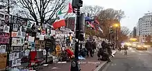 The Square, an ongoing protest and vigil site for decades, was then surrounded by the expanding fence that included the White House. The fence facing north then became a gathering place and memorial that became known as the Black Lives Matter Memorial Fence.[5][6][7][8]