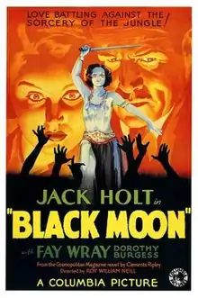 Black Moon is a 1934 American horror film directed by Roy William Neill and starring Jack Holt, Fay Wray, and Dorothy Burgess.[1] It is based on a short story by Clements Ripley that first appeared in Hearst's International-Cosmopolitan. The film centers on a young woman who returns to the tropical island where her parents were murdered during a voodoo ritual with her daughter and nanny, only to become corrupted by the native's dark rituals.
