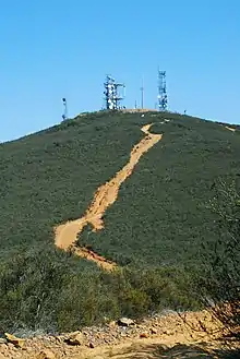 Black Mountain is the central feature of Black Mountain Open Space Park, standing at 1,554 feet (474 m) tall.[1] At its peak, Black Mountain is host to a handful of communication towers, including a retired AT&T microwave repeater tower[3] and a Verizon wireless communication facility.[4]