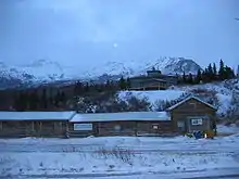 The Black Rapids Roadhouse, also known as the Rapids Roadhouse and the Rapids Hunting Lodge, is a historic Alaskan structure along the Richardson Highway in east-central Alaska. It was built in 1902.[2][3][4][5] Construction of the Alaska Railroad led to a decline in the 1920s, but the original roadhouse continued to operate until 1993. A new, modern lodge was built near the roadhouse in 2001 and the original building is preserved as a historical curiosity and tourist attraction.