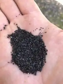 Black sugar is a form of crystalline precipitate or a particulate pollution by-product unique from creosote caused by the burning of low grade coal in the 1940–1960s. The outgas from burning coal would be a by-product (burning coal was used in residential forced hot air furnaces) for the heating of family housing. Black sugar was often found on porches and the cold ductwork and caused the high carbon, soot-loaded gas to precipitate[1] on the floors and walls and crystallize. Outward appearance was that of very fine, shiny coal, but would not combust when exposed to flames. After a time, the crystalline material would become powdered, to the consistency of white cane sugar, but retain a fine, shiny, black texture, thus the name "black sugar". The material would often be cleaned from duct work by chimney sweeps or cleaning staff on a regular basis in the Beaver-Ambridge-Monaca area of Pennsylvania along the Ohio River near Pittsburgh.[2]