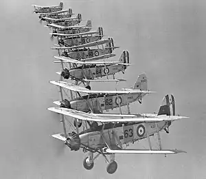 In the early 1930s the torpedo bomber squadrons of the Fleet Air Arm were equipped with the Blackburn Ripon. While the Ripon had only entered service in 1930, it was powered by the elderly water-cooled Napier Lion engine, and it was realised that replacing the Lion with a modern air-cooled radial engine would increase payload and simplify maintenance. In 1932 Blackburn decided to build two prototypes of radial-engined Ripons, one powered by an Armstrong Siddeley Tiger and the second by a Bristol Pegasus, as a private venture (i.e. without an order from the Air Ministry).[1][2] The Pegasus-engined prototype first flew on 30 September 1932, and after testing was chosen in preference to the Tiger-powered aircraft as a short-term replacement for the Ripon. Initial orders were placed for 26 newly built aircraft and 38 conversions of Ripon airframes, production beginning in 1933. A further 26 conversions of Ripons into Baffins were ordered in 1935 because of reliability problems associated with the Armstrong Siddeley Tiger engines powering Blackburn Sharks, and the desire to expand the strength of the Fleet Air Arm.[1][3] An additional three new production Baffins had the 580 hp (430 kW) Pegasus II.M3 engine and were termed the Baffin T8A.[4] The aircraft is said to have inspired the coining of the word "Boffin".