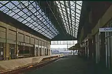 The station was covered by twin train sheds, an architecturally detailed canopy that covered all platforms. In 2000, due to its decaying state it was removed, changing the nature of the station in a £35 million regeneration project. A new building was built on the main island platform. The Grade II listed original entrance built in the 1880s,[13] including the station buffet and former booking hall, was retained and refurbished. A piece of public artwork by artist Stephen Charnock[14] was also erected at the edge of the platform, which consists of a stainless steel screen depicting Blackburn's industrial past and its more modern life today. The images include some of Blackburn's most successful figures and famous visitors such as David Lloyd George (Liberal politician), Mahatma Gandhi (campaigner for Indian independence), Kathleen Ferrier (singer), Barbara Castle (Labour politician), Carl Fogarty (superbike racer), Wayne Hemingway (fashion designer) and Jack Walker (businessman). Platform 4, which had previously not been in timetabled use since the 1970s, was reopened for regular services as part of the work.