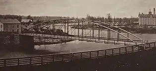 The Blackfriars Bridge is the oldest wrought iron bridge in North America still used for vehicular traffic.[2] The construction of the bridge is made in a bowstring truss design that uses pin connections and lattice girders.