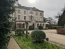Just east of the house is a two-storey stable block with a large central dovecote, built in rubble stone in the mid-18th-century.[16] A lodge at the north-west entrance to the grounds, on the London-Bath road, was built in squared ashlar in the mid to late 19th century.[17]