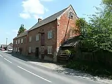 Blackland Mill stands on the River Marden downstream from the church, where there has been a corn mill probably since the 13th century, and certainly since 1728.[1] The present substantial structure is a rebuilding of 1800-1810 in red brick with stone windows, and retains its iron waterwheel.[5] The mill was in operation until c.1915–1920, and again from 1983 to 1993.[1] The adjoining stable of c.1810 has a roof described by Historic England as "an exceptional example of early use of iron in roof construction" and is Grade II* listed.[6]