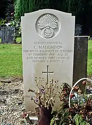 The grave of Corporal Clifford Haughton, Royal Regiment of Fusiliers and his wife and children stands in the cemetery. They were all killed by the IRA in 1974 in the M62 coach bombing, when a time bomb exploded on their coach en route to Catterick.
