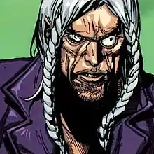 He joins with the Hood's gang in an attack on the New Avengers, who were expecting the Dark Avengers instead.[19] He was recruited by Zadikiel to assemble a "task-force" of Ghost Rider foes in order to hunt down and destroy both the Ketch & Blaze Ghost Riders.[20] Later, he attacked the church filled with the gun armed nuns, alongside Orb, Deacon and the new Vengeance. He cloaks the place in darkness threatening and mocking the nuns, but is stopped by being shot with bullets that were covered in holy water. Blackout runs away screaming in pain into the night.[21]