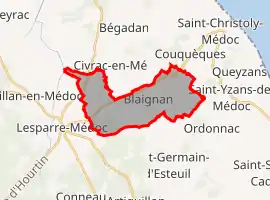 Blaignan-Prignac (French pronunciation: [blɛɲɑ̃ pʁiɲak]; Gascon: Blanhan e Prinhac) is a commune in the Gironde department in Nouvelle-Aquitaine in southwestern France. It was established on 1 January 2019 by merger of the former communes of Blaignan (the seat) and Prignac-en-Médoc.[2]