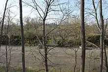 The train station in Blairstown was located in what is now Footbridge Park. The parking lot for the park was originally a small railyard, complete with passing sidings, a turntable and engine house, and a coaling dock that is still extant (for a while in later years, a skate park was located under the old coaling dock). The footbridge across the Paulinskill River was the second one at the site. The present footbridge was dedicated by Blair himself shortly before his death, and provided direct access between the town of Blairstown and the train station, and later to Footbridge Park.