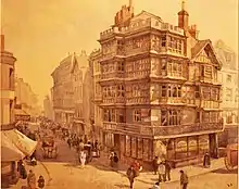 The acceptance of a watercolour drawing, Greenfell Lane, Gloucester, by the Royal Academy in 1869 seems to have been a turning point for Blanche's artistic career.[12] In early 1870 she had a one-person show in Bristol – 70 watercolours (some framed and others unframed)[13] – and in the summer of that year The Turnstile was selected for the Royal Academy. Blanche would sign her pictures with her initials, BB[14] – suited to the small dimensions of most of her work and perhaps also conveniently gender-neutral.