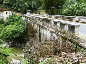 Blanco Bridge or Bridge 152 (Puente Blanco in Spanish) was built in 1924, on Puerto Rico Highway 10 at km 48.1 in Arenas, a barrio of Utuado in Puerto Rico. PR-10 at this location connects the towns / municipalities of Utuado and Adjuntas. It's named Puente Blanco (white bridge) because it was painted white for decades. The concrete bridge rises 33 feet over the Pellejas River between Adjuntas and Utuado. The total length of the bridge is 20.5 meters and its width is 4.9 meters. The bridge designer was Rafael Nevares and Martín Aparicio was the builder. The bridge which cost $23,796 was important for these inland coffee municipalities. The bridge was added to the US National Register of Historic Places on July 19, 1995. The bridge met the requirements for its design and craftsmanship as well as for its significance to the historical period between 1924 - 1944 in Puerto Rico when coffee production was an important part of its economy. The bridge helped improve exchange and communication between nearby communities working in coffee production.[2]