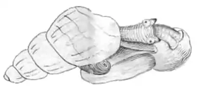 ![]() Drawing of apertural view of a shell. The scale is 1 mm. |