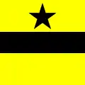 The blazon of the municipal coat of arms is Or, a Bar Sable, in chief a Mullet of the same.[5]
