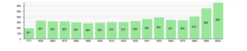 Blauen has a population (as of June 2021) of 705.[6] As of 2008, 4.8% of the population are resident foreign nationals.[7] Over the last 10 years (1997–2007) the population has changed at a rate of 4.2%.[8]