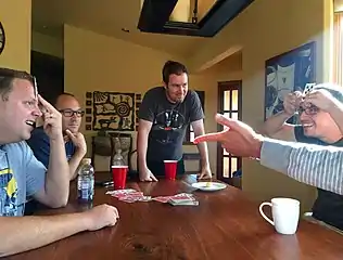 In the standard version, the person with the highest card wins. Each player is dealt one card that they display to all other players (traditionally stuck to the forehead facing outwards, supposedly like an Indian feather). This is followed by a round of betting. Players attempt to guess if they have the highest card based on the distribution of visible cards and how other players are betting.