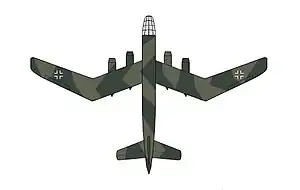 The main undercarriage consisted of two sets of vertically-retracting wheels located fore and aft in tandem under the fuselage. Because of this the fuselage could not rotate for takeoff in the usual way and instead a variable-incidence wing, originally developed for the BV 144 transport, was used. Small retractable outrigger wheels would be placed in the wings.[2]