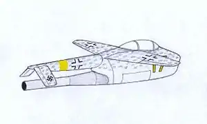 In the latter part of 1944 the Luftwaffe High Command saw an urgent need to counter the devastating allied bombing raids. They conceived the idea of a Miniaturjäger, a miniature fighter, which could be cheaply and quickly manufactured in large numbers. Problems with the turbojet engines then appearing led to the adoption of the more primitive pulse jet. They approached Heinkel, Junkers and Blohm & Voss (B&V) in November to put forward designs using a strict minimum of materials, to be powered by one Argus As 014 pulse jet engine, similar to that used in the V-1 flying bomb.[1] There would be no radio and only the most basic electrical equipment.