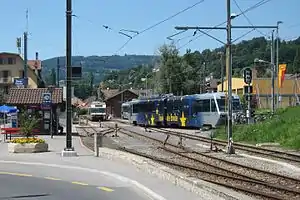 Blonay railway station (French: Gare de Blonay) is a railway station in the municipality of Blonay, in the Swiss canton of Vaud. It is located at the junction of the 1,000 mm (3 ft 3+3⁄8 in) metre gauge Vevey–Les Pléiades and Blonay–Chamby railway lines. Both are owned by Transports Montreux–Vevey–Riviera, although the latter is operated as a heritage railway by the Blonay–Chamby Museum Railway.[1]