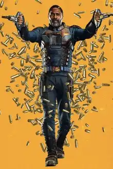 - The Robert DuBois incarnation of Bloodsport appears in The Suicide Squad, portrayed by Idris Elba.[79][80] This version is a Black British mercenary armed with a high-tech suit and collapsible weapons that only he can use,[81][82] who is serving time in prison for shooting Superman with a Kryptonite bullet.[83] Additionally, he has a daughter named Tyla.[84][85]