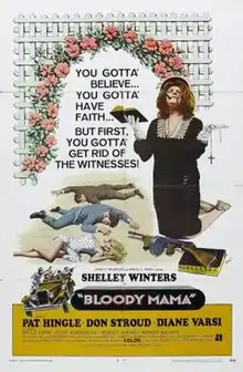 Bloody Mama is a 1970 American low-budget drama film directed by Roger Corman and starring Shelley Winters in the title role.[3] It was very loosely based on the real story of Ma Barker, who is depicted as a corrupt mother who encourages and organizes her children's criminality. The film features an early appearance by a young Robert De Niro as Lloyd Barker.