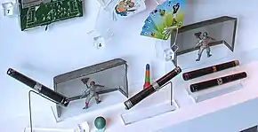 The game is often played with whatever materials are at hand, such as drinking straws, and ping-pong balls but is also sold as a boxed game in some toy shops. Boxed games typically contain a few plastic pipes, a ball, and two plastic goals. Some versions may include two plastic goalkeepers on sticks for the players to defend the goal with, or a football pitch laid out on a piece of cloth that is then put on a table and used as the playing surface, or even supply a rigid surface to play on, with raised boundaries so the ball cannot go out of bounds. At least two players are involved, though some sets will supply more pipes so the whole family can play. The pipes may be simple, or may have mouthpieces after the fashion of a pea shooter.