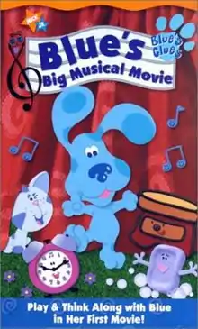 Blue's Big Musical Movie (also known as Blue's Big Musical, Blue's Clues: The Movie and The Blue's Clues Movie) is an American direct-to-video Live-action/animated musical film based on the Blue's Clues television series.[1] It was released on VHS and DVD on October 3, 2000.[2][3][4] The movie also airs on television, starting with a primetime premiere on January 13, 2002. A video game based on the movie was released for the original PlayStation around the same time, making it the only Blue's Clues video game on a home console other than the V.Smile.