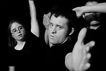 Blue Apple Theatre is a theatre company based in Winchester, England. It was founded in 2005 by Jane Jessop to support the inclusion of actors with intellectual disabilities on mainstream stages.[1] In May 2012, six Blue Apple actors toured a re-imagining of William Shakespeare's Hamlet around the south of England.[2] They were the first actors with Down syndrome to perform the play professionally.[3] In 2016 members of the company, four with Down syndrome, performed scenes from Shakespeare on stage in the Sam Wanamaker Playhouse at the Globe Theatre in London.