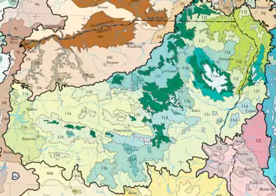 ![]() Level III ecoregions in the Pacific Northwest: the Blue Mountains are marked 11 | |