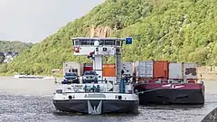 Blue Flagging. Especially on rivers, look out for ships or barges with a blue flag or board display on the starboard side of the wheelhouse.